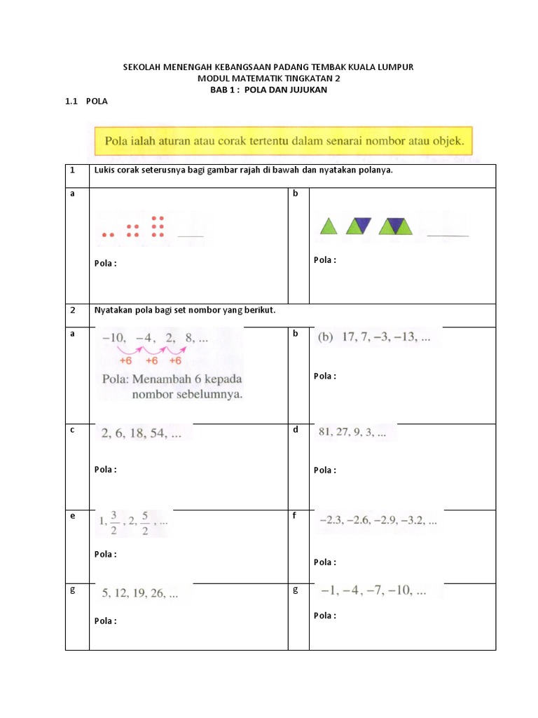 Ejercicio De Matematik Tingkatan 2 Pola Dan Jujukan